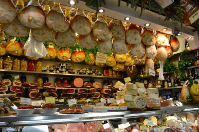 ハムやチーズ、お酒や果物など、いろいろな店があって、みているだけでもとても楽しいですよ。- 旅行時期