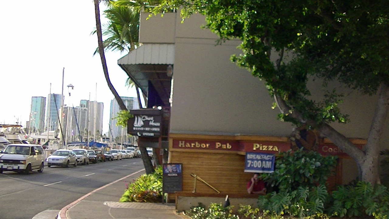 サンセットの時間にあわせてラナイ席をお願いしましたが確約はできないとの答え・・・でもちゃんとヨットハーバーが見えるラナイ席に座れましたよ♪(あいにくの曇り空でサンセットは見れませんでしたが)