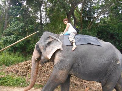 30分3000ルピーで像に乗ったり、写真を撮ったり、餌をあげたり、川で像を洗ったりできました。