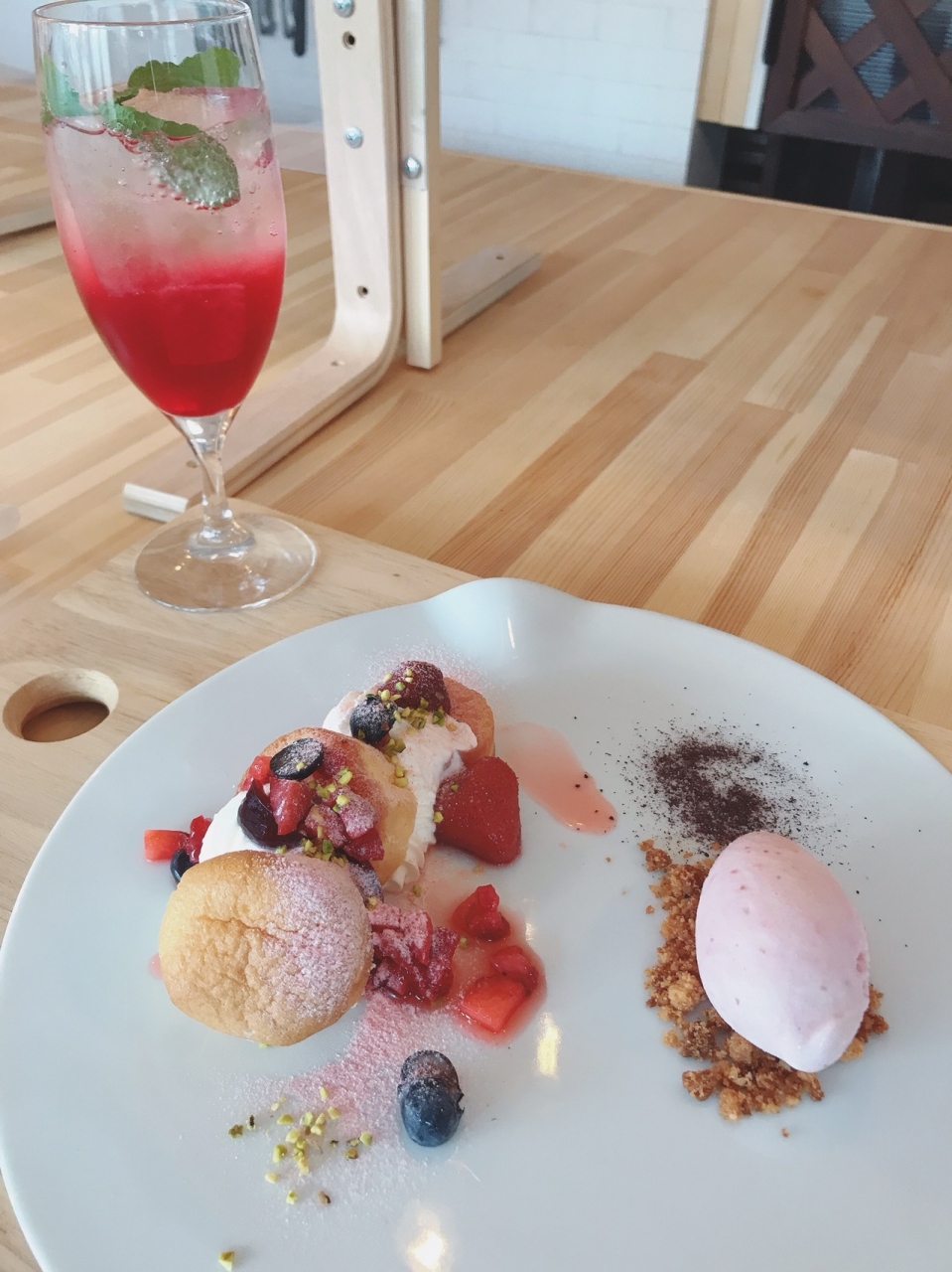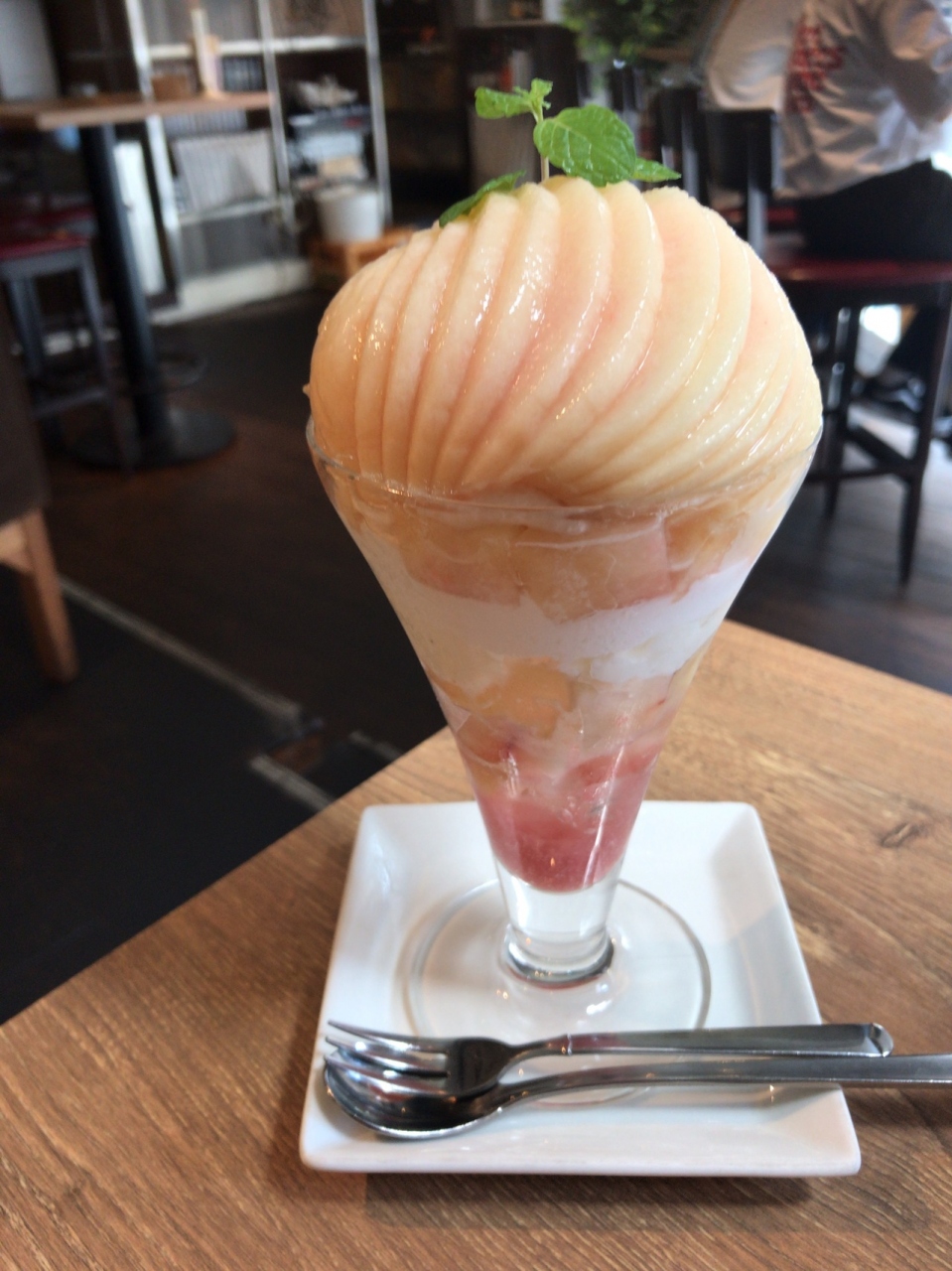 伺った時はちょうど桃の時期だったので迷わず桃のパフェを選択。薄くスライスされた桃が、グラスの上に並べられているのを見た後は、賞味。ぱっと見は重たそうに思いますが、食べてみるとあっさりです。季節ごとに取り扱うフルーツは異なるので、要確認!- 旅行時期