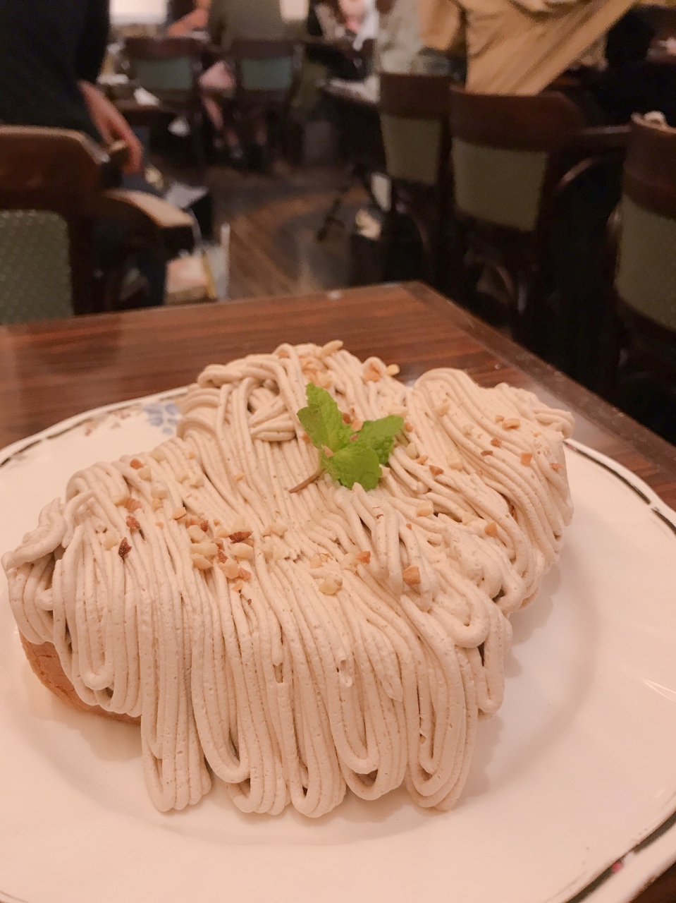 バタートーストの上にこれでもか!!と、のったモンブランペーストの迫力に圧倒されますが、甘すぎないのでペロッと食べれます。
