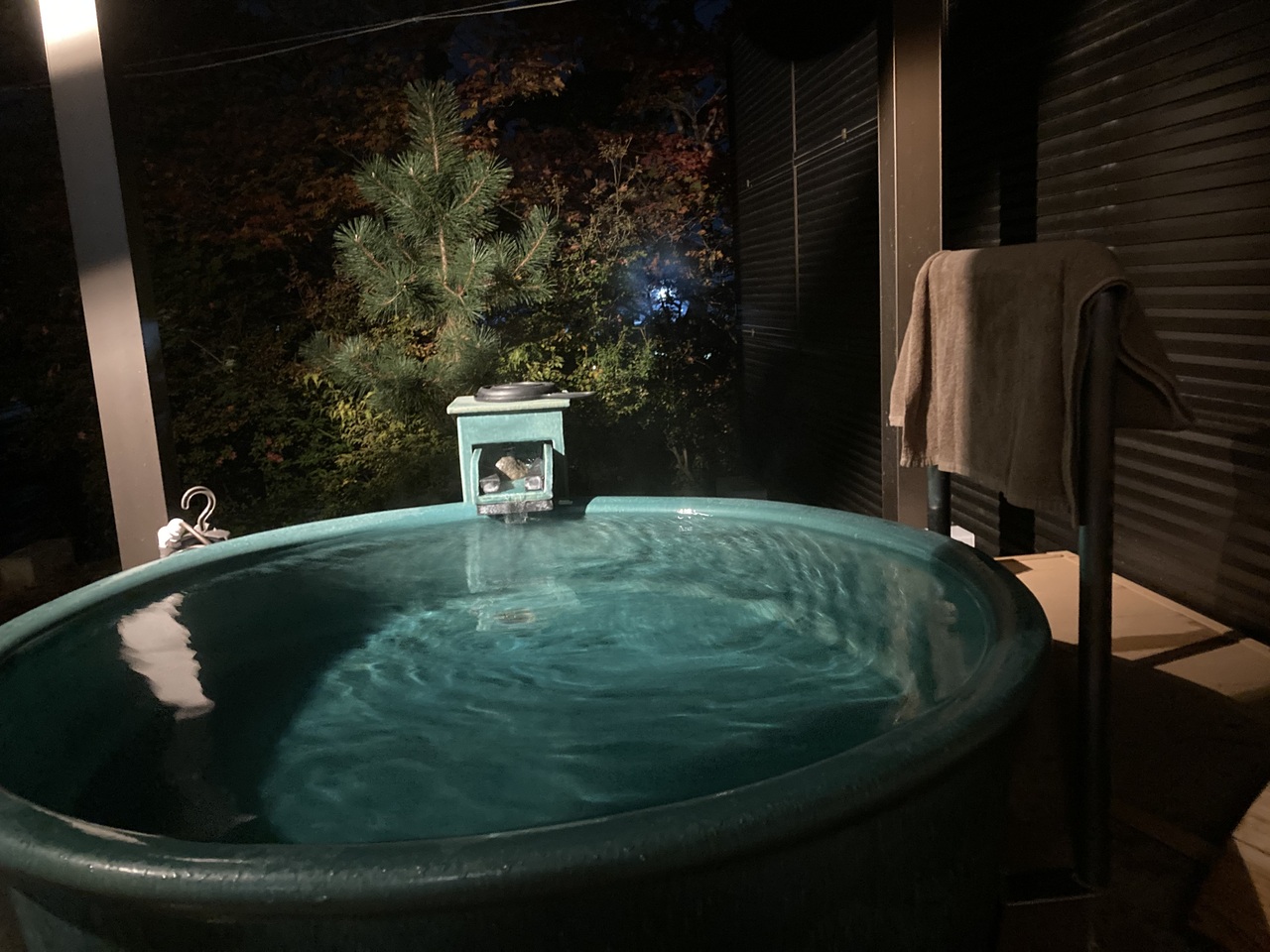 露天風呂には重めの木のフタがしてあって一人で動かすのは大変なので2枚だけずらして入浴しました