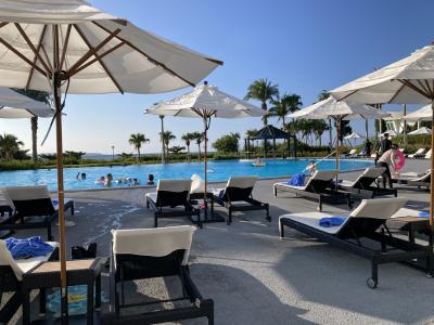 ホテルはエントランスに入ってすぐにテンションが上がる豪華さで、ロビーからは綺麗な景色が眺められます