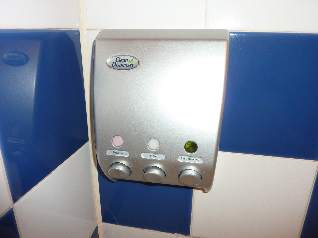 シャンプー、リンス、ボディーソープは備え付けのディスペンサーから出すシステム