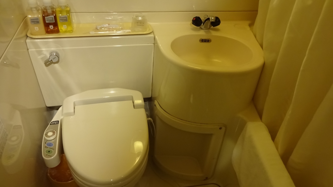 客室も事前に確認しなかった自分が悪いのですが、てっきり都会の街なかにあるビジネスホテルゆえ、当然のようにトイレはウォシュレットだと思ってました。