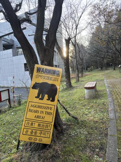ホテル近くで10月に熊が目撃されたそうで、熊鈴をホテルで貸し出してまし...