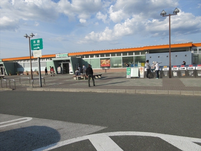 中央自動車道路上り線にあるパーキングエリアです.お土産などを売るショッピングコーナーの他に,フードコートもあります.また,ガソリンスタンドも併設していました.フードコートは,定番のラーメンやカレーの他に,ソースカツ丼のようなものもありました.