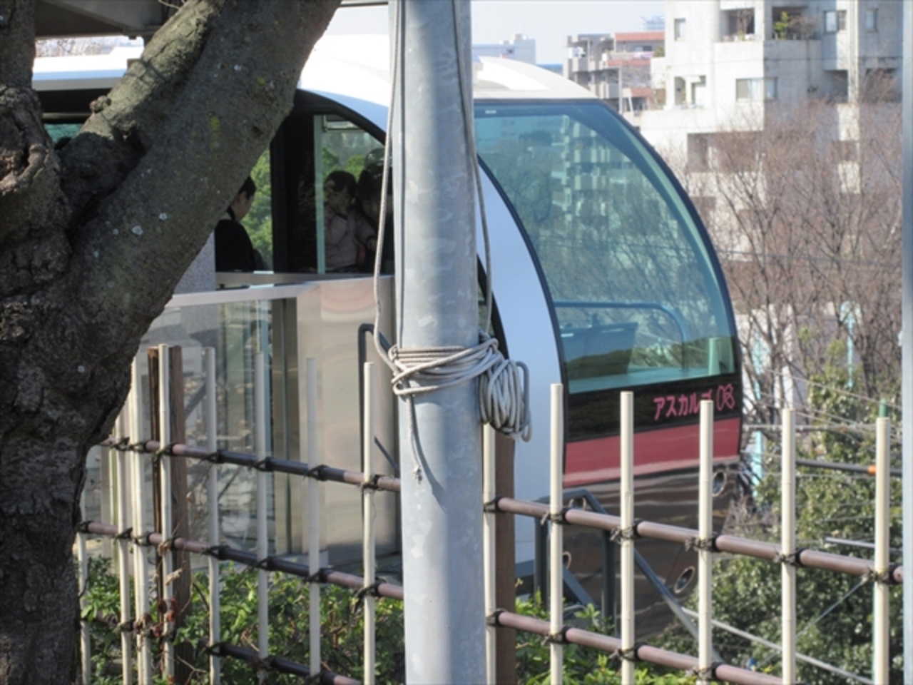 JR王子駅中央改札口から飛鳥山公園を結ぶ全長50m足らずのモノレールで、愛称はアスカルゴです。駅から飛鳥山公園までの勾配はかなりあるので、足の弱い方にも便利ですし、形が可愛いので、子供たちにも人気の乗り物になっています。乗車は無料ですので、近くに来られた際には一度試されても良いと思います。