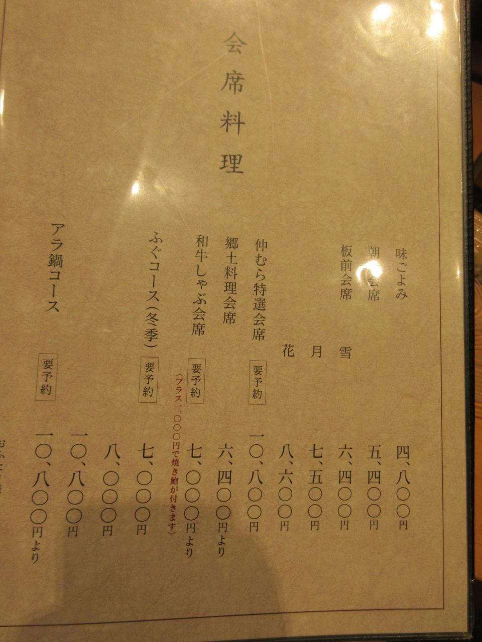 熊本市内にある和食懐石料理のお店です.ランチメニューは安価なものがあるそうですが,ディナーはコース料理も含めて5,000~10,000円程度の価格帯になります.料理自体はしっかりしており,外れることはないと思います.地元の食べ物も出して貰える他,熊本限定という米焼酎も置いてあり,こちらはとても美味しかったです.基本個室になっているので,親しい人との会食などに使うには,良い場所だと思います.