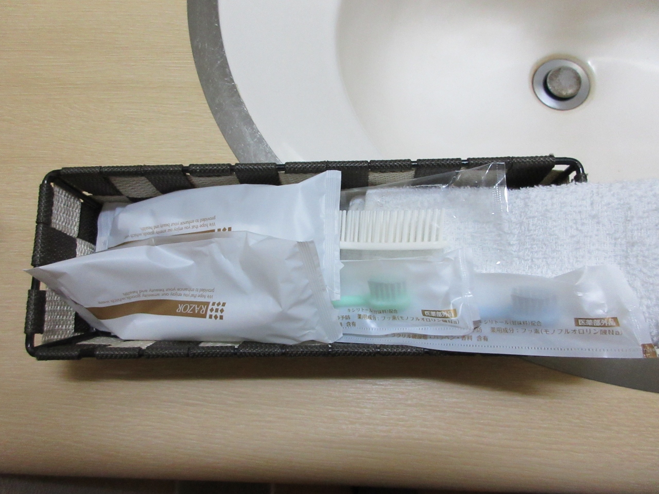 室内には歯ブラシと剃刀しか置いてありませんでした.お茶は1パックのみです.