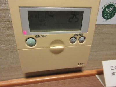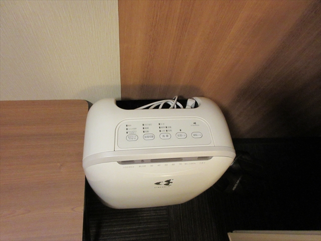部屋は狭いがベッドはそれなりの大きさ.ただし,全体的に狭く感じる.エアコンは1℃ずつ調整可能.コンセントは机の上に2個.空気清浄機も置いてあった.