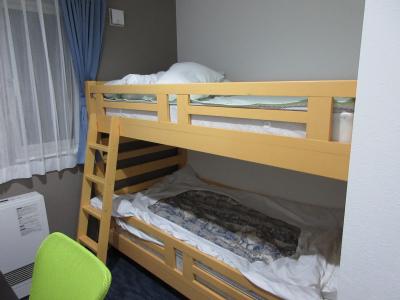 シングルの部屋に二段ベッドが据え付けられているタイプですが,狭い部屋に無理矢理ダブルベッドを置くよりも広く感じます.ただし,二段ベッド自体はごく普通の物なので,寝心地は余り良くありません.部屋は奇麗でした.