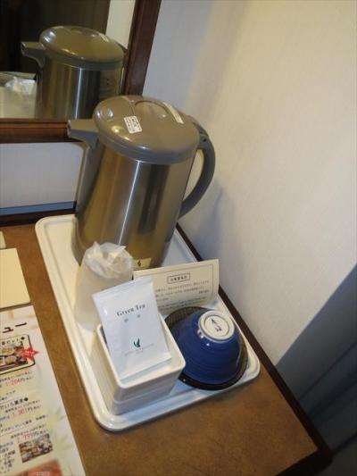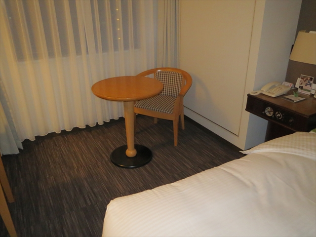 部屋は普通のビジネスホテルよりは少し広い程度です.ベッドの他に椅子とテーブルがありますが,却って部屋を狭くしています.引き出しを開ける時には一々椅子をどかさなければいけないので,大変でした.