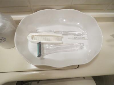 コンディショナー,シャンプー,ボディソープ,歯ブラシ,剃刀.