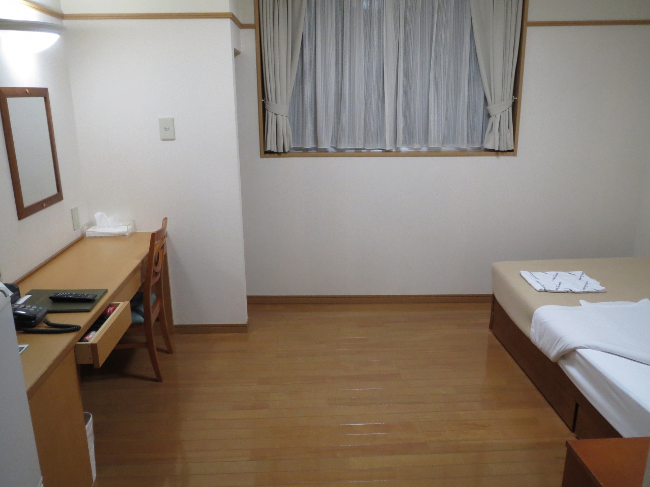 「普通のビジネスホテルとどこかが違うな」と思っていたら,床がフローリングでした.カーペットだと掃除が大変だったり,タバコの焦げ跡が付いたりということで,フローリングにしているのだと思いますが,冬は寒そうです.