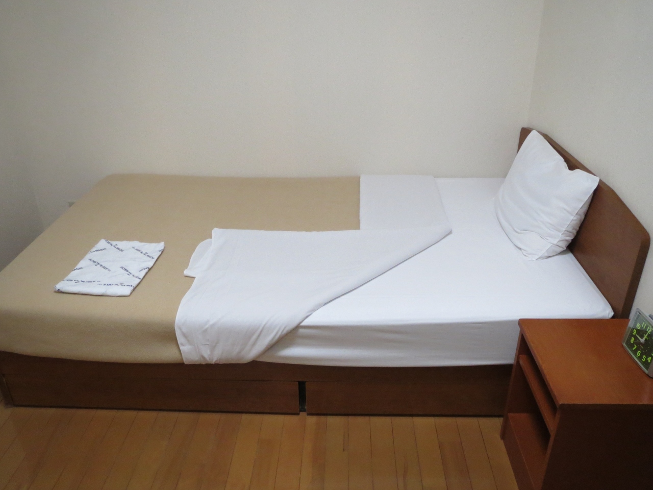 ベッドはセミダブルの大きさで,寝心地は良いです.