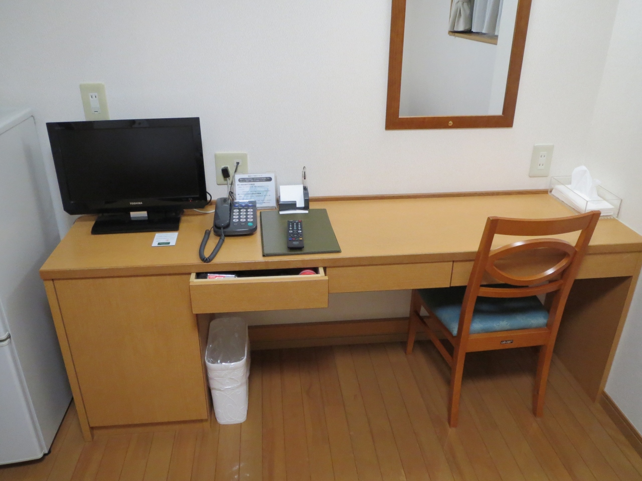 ・デスクは広く,TVが載っていないので,PCを広げて仕事をするのに適しています.椅子もキャスター式でないので,使いやすいです.