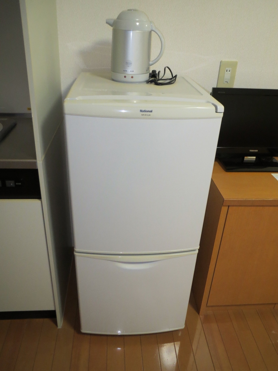 ・冷蔵庫はビジネスホテルにしてはチョット大きめです.手元のスイッチでオンオフできるので,音が気になる場合は消すことができます.
