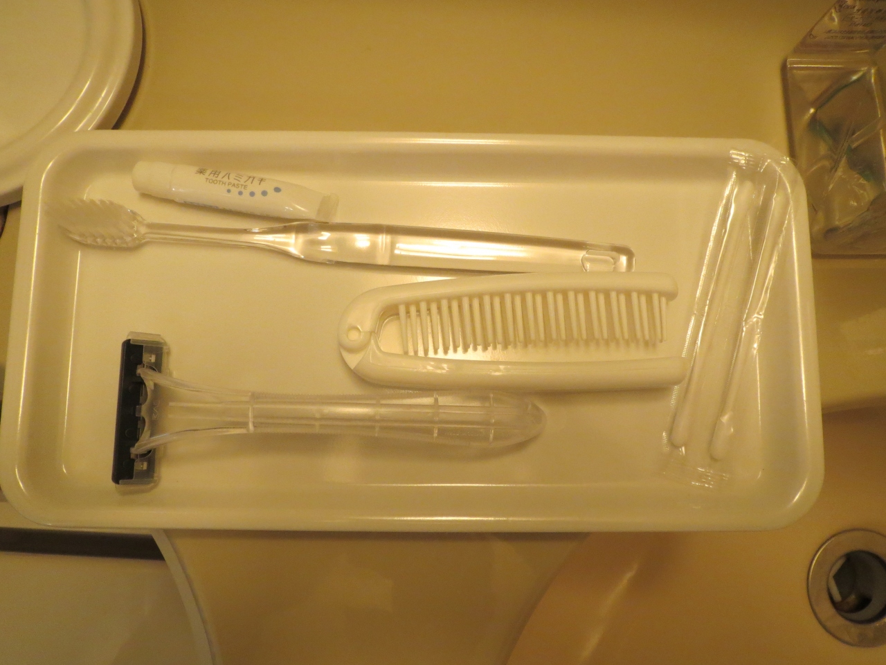 部屋には歯ブラシしか置いてありません.髭剃り,櫛,パジャマなどは,フロントの後側に置いてあります.
