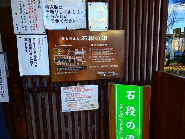 人気の露天風呂で伊香保温泉の源泉の近くにあります.車でも行けますが,駐車場はないようでした.伊香保温泉の有料駐車場は石段の下にあるので,普通の観光客は伊香保温泉の石段を歩いて行きますが,伊香保神社から更に長い距離を歩くので,徒歩で行くにはそれなりの覚悟が必要です.露天風呂なので,内風呂はありません.かつては混浴のようでしたが,私が行ったときには男女別に分かれていました.泉質は非常に良く,鉄分を含むお湯ですが,1月の露天風呂のせいか,少し温度が低かったのが残念でした.