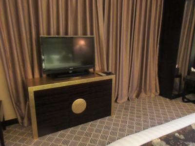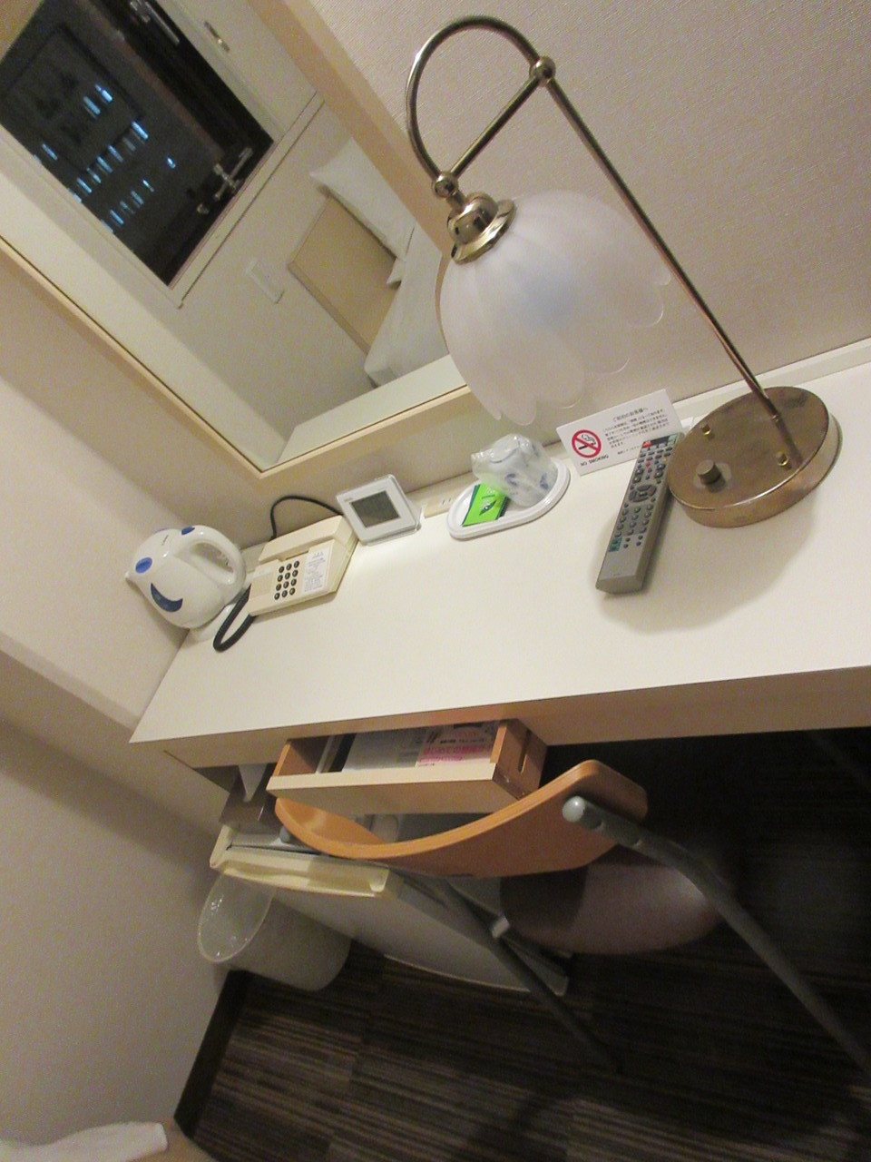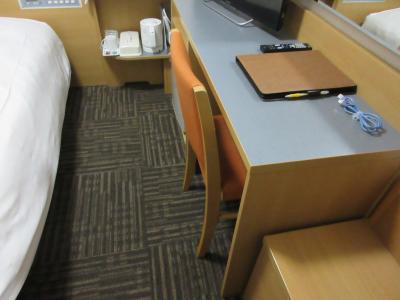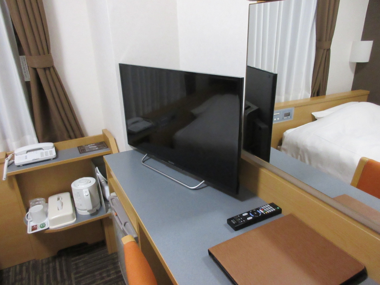 部屋は普通のビジネスホテルのサイズです.TVは26インチくらいのサイズだったと思います.室内には空気清浄機とズボンプレッサーが置いてありました.