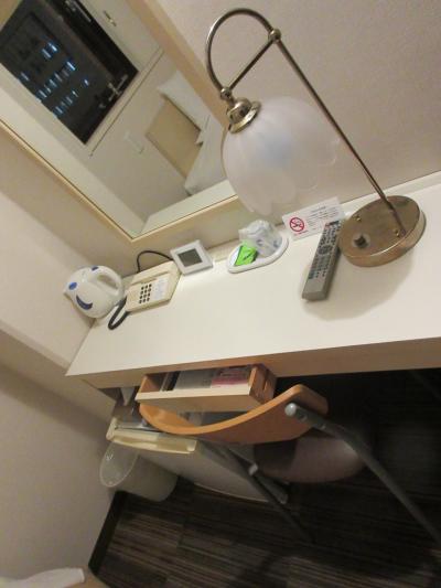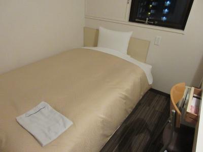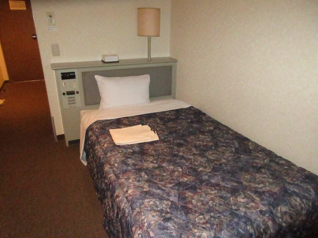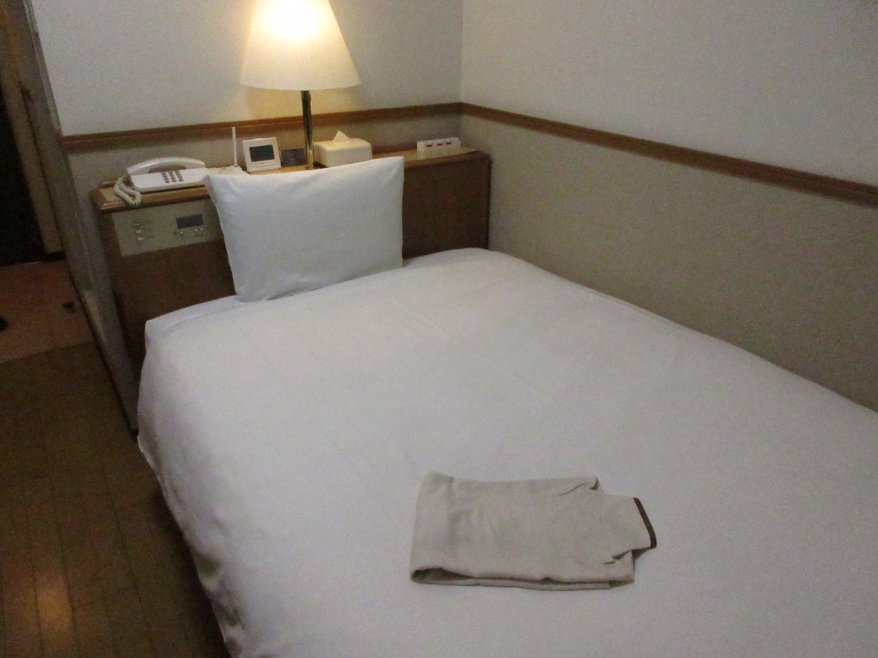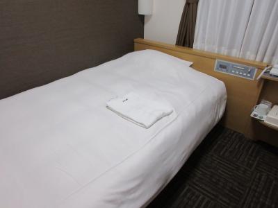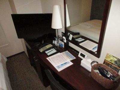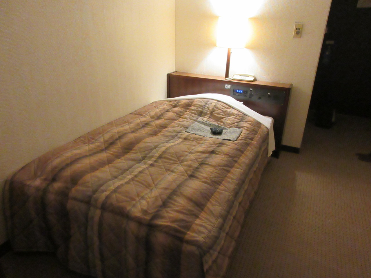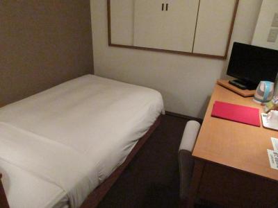 町田駅から徒歩5分以内の立地条件です.部屋はこのクラスのビジネスホテルとしては,それなりの広さを持っていますが,全体的に細長い部屋なので,カタログにあるように16m2の広さは感じませんでした.ベッドはシングル仕様で,最近のビジネスホテルに比べると,チョット幅が狭く感じます.ただ,ベッドサイドにコンセントがあったのは助かりました.