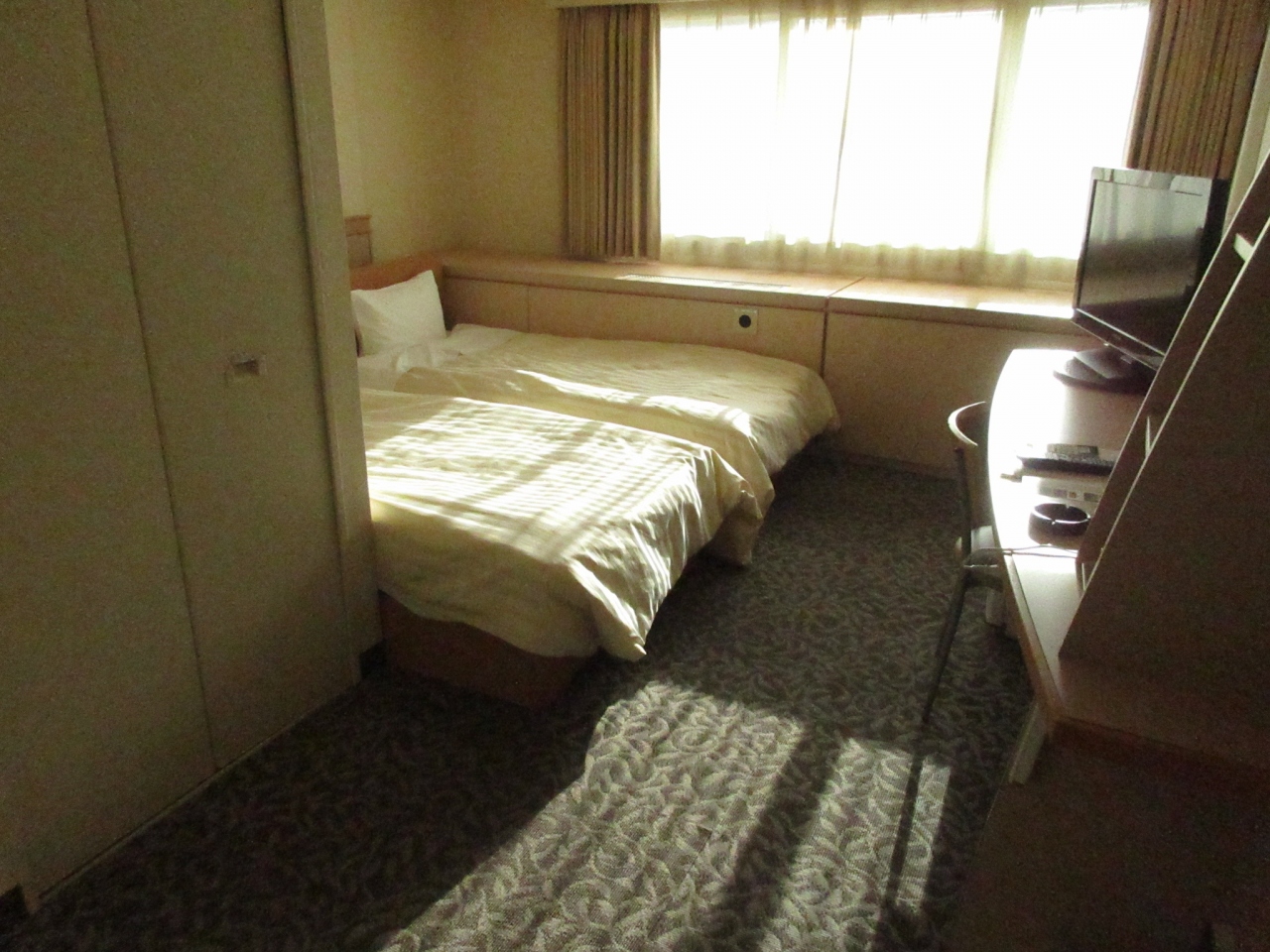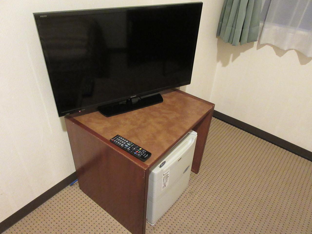 部屋は確か12m2となっていましたが,やや狭く感じました.TVはシャープのアクオス25インチくらいで,小さいです.