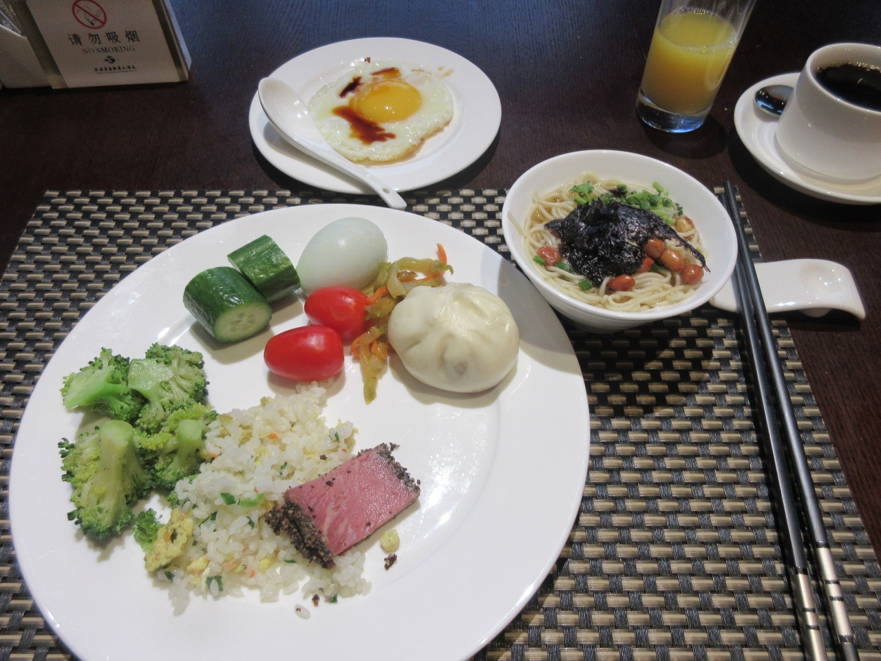 朝食はこのホテルのウリらしいです,特に変わったところはなく,ごく普通のビジネスホテルの食事でした.ただ,フロントの所には無料のコーヒーやソフトドリンクが置いてあり,良かったです.