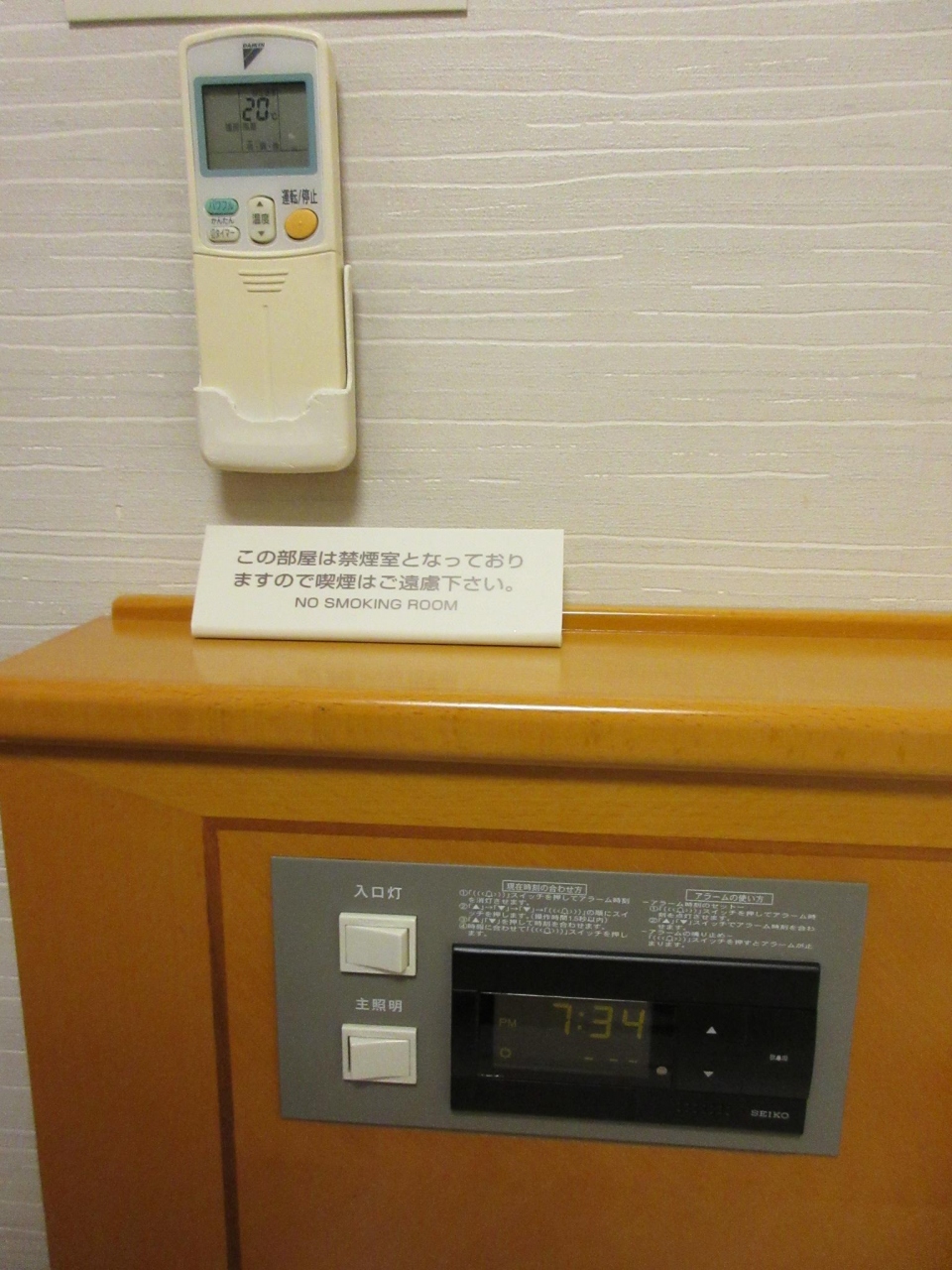 本厚木駅から徒歩5分くらいの所にあります.ホテル自体はそれ程新しいものではありませんが,よく清掃されていました.部屋は12m2で,やや狭く感じました.部屋に入るとスリッパが置いてあって,ここで靴を履き替えるシステムになっていました.