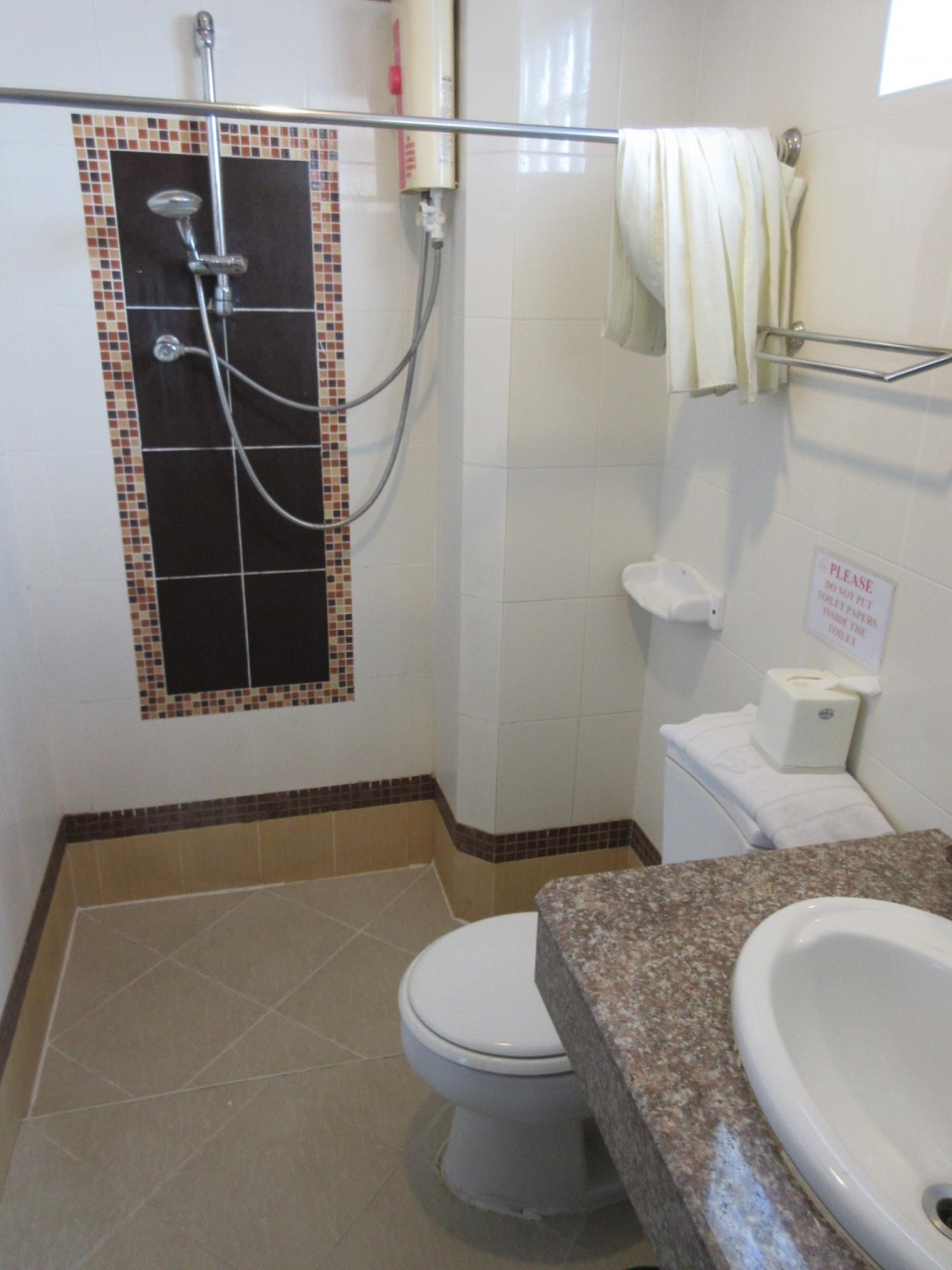 バンコクでは定宿にしている所です.24時間空港からの送迎があるので,夜中の便で到着しても不安なくホテルに着けるので,いつもこのホテルを利用しています.建物はやや古くなっていますが,掃除が行き届いているので,余り不満はありません.ただし,エレベーターがありません.今回は最上階(4F?)だったので,結構大変でした.部屋は見た目ですが30m2くらいあり,かなり広いです.TVは100チャンネルくらい映りますが,いつも操作方法が判らず,一度消すと二度と付けられません.受付もフレンドリーで,従業員からも余計なチップなどを請求されないので,その点はとても良い部分ですが,Wi-Fiが遅いのは相変わらずで,以前ならWi-Fiがあるだけで満足していましたが,今はタイのどのホテルでも高速Wi-Fiが当たり前になっているので,未だに3Gレベルの速度なのは評価を落とすところです.朝食は隣のレストランで,宿泊費に入っていない場合には100バーツで作ってくれます.空港から近く送迎も無料なので,トランジットでタイ以外の国に行く場合にも便利です.- 旅行時期