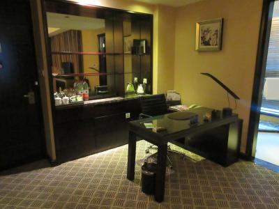 建徳市の中心部にあり,移動するには非常に便利なホテルです.建物はかなりの高層階で,ランドマークとしても利用できます.室内はキングサイズのベッドとソファ,それに大きめのデスクがありました.また,ベッドサイドにもコンセントがあったので,夜寝転びながらPCを見るのにも便利でした.TVはフィリップス製の32インチくらいですが,基本的に中国語放送で,しかも音量の調節が上手くできないので,スゴク大きな音か,全く音が出ないかのどちらかしかありませんでした.また,元々暖地のホテルとは言え,エアコンの調節具合が悪く,最高温度が20℃にしかならないため,夜はかなり寒かったです.Wi-Fiはありますが,中国のプラットフォームでないと使えないため,使用しませんでした.また室内に電話はありましたが,誰も使わないせいか,国際電話はかけられませんでした.朝食はレストランのバイキング形式で,中華料理が中心ですが,キムチなどもありました.また,オムレツ等はその場で作ってくれます.バスルームは広く,バスタブも着いています.お湯のではマァマァでした.見た目は良いですが,色々と難点のあるホテルデした.- 旅行時期