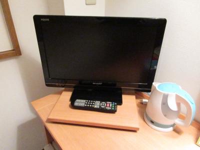 テレビは東芝レグザの25インチくらいで,少し小さいです.デスクは小さいですが,椅子はキャスターなしで使いやすいです.ただ,デスクの上に色々な物が乗っており,片付けるのに時間がかかりました.エアコンは集中管理方式で,個別に細かく調整できないのが残念でした.