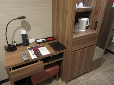 国内のホテルとしては、比較的広い部屋だと思います。場所も市内の中心部にあって、便利だと思います。アメニティの質も良く、使い勝手もよかったです。大浴場はありませんが、室内の浴槽は比較的広かったです。難点は、テレビが壁掛け式になっているので、ベッドから遠く、少しみにくかったことと、椅子に背もたれがないので、使い勝手が悪かったことです。この辺りは少し工夫して貰えればと思いました。