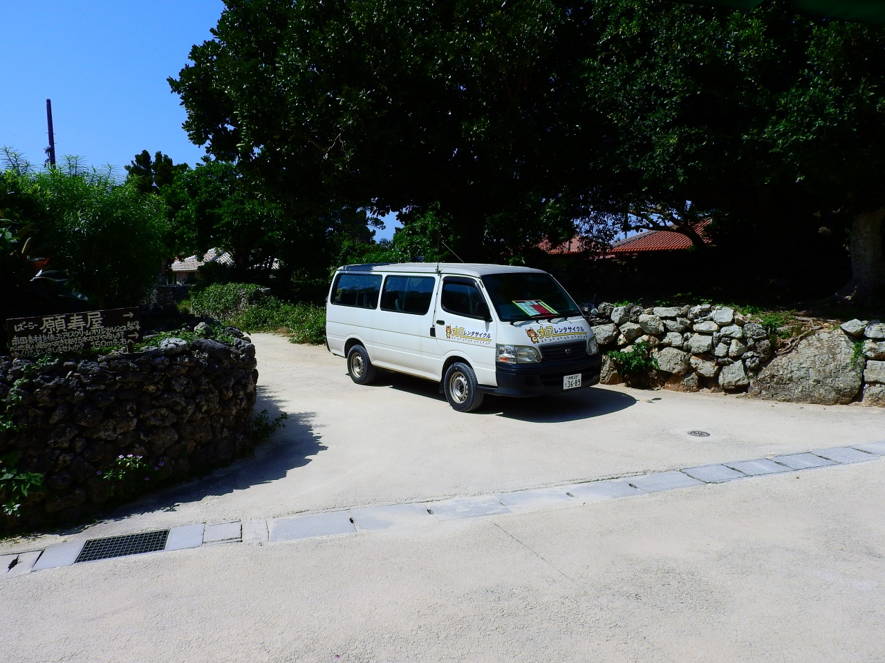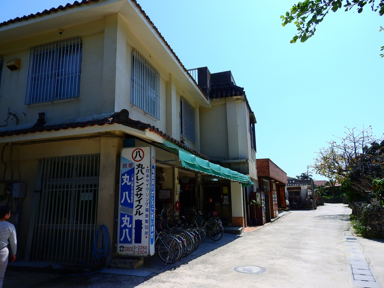 竹富島のほぼ中心地にあります.電動アシスト付き自転車もあるようですが,竹富島自体が平坦な島なので,普通の自転車でも特に不便は感じませんでした.