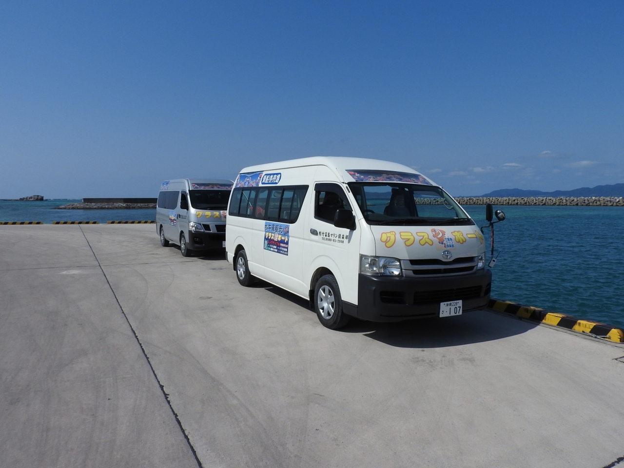 石垣島に戻るフェリーが出発するまで時間があったので,竹富島マリン倶楽部のグラスボートを利用してみました.時間は30分くらいで,港の回りを周回します.グラスボートは30人くらい乗れるものですが,利用客は私達を含めて数人しかいませんでした.