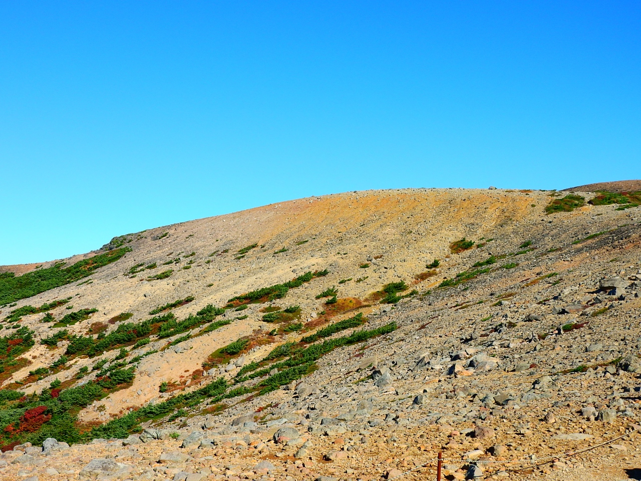 なお,東吾妻山からは吾妻スカイラインに下りるルートを選びましたが,浄土平までかなり長い距離車道を歩く必要があります.車道の脇にトレッキング用の道路もありますが,利用者が少ないらしく,整備状況は良くありませんでした.- 旅行時期