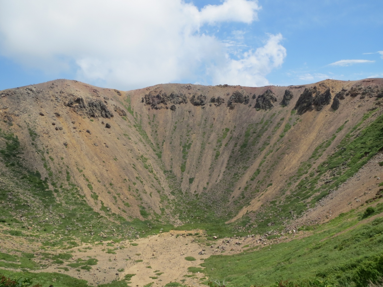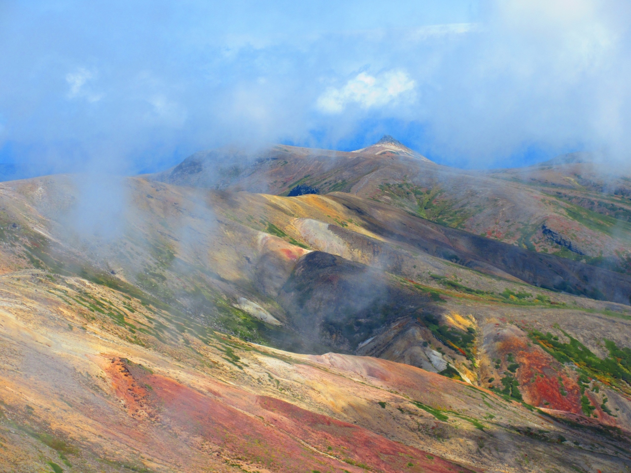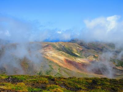 頂上までは旭岳のロープウェイ駅から2時間程度だと思います.勾配は急ですが,それほど難しい山ではないので,時間がある方は是非トライして欲しい山です.ただ,旭岳から裏旭の方へ下りる場合は足場が悪く,また残雪もあるので,十分注意が必要だと思いました.- 旅行時期