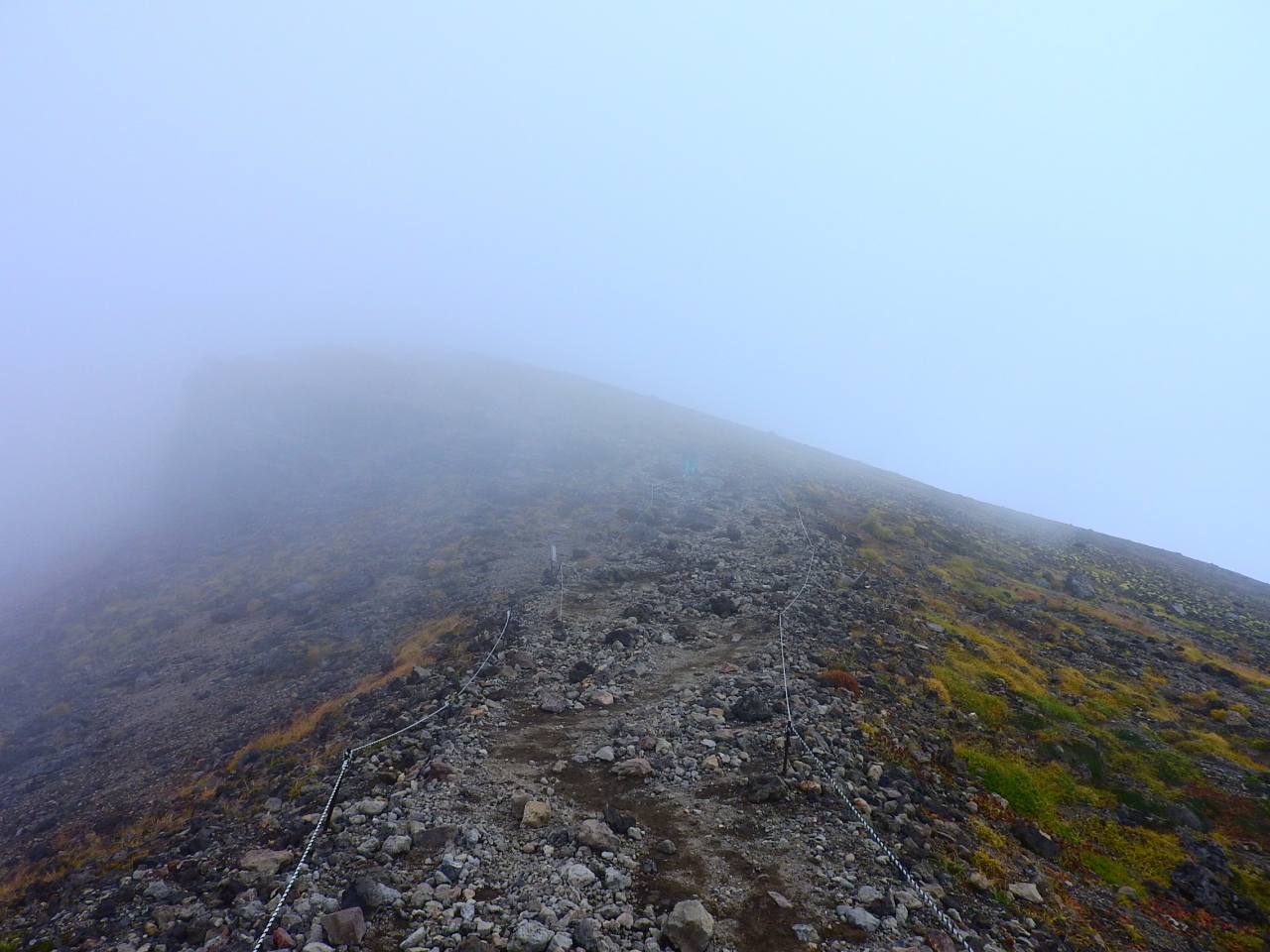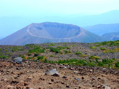浄土平ビジターセンターを出発し,一切経山を往復,その後鎌沼を経て,東吾妻山に登り,浄土平に日帰りで戻ってくることができます.ただし,一切経山と比べると森林限界が頂上付近まで現れず,視界が悪い上,鎌沼のように周回用の木道が整備されている訳でもないので,登山道の状況は良くありません.特に雨が降った後は,かなり濡れると思います.