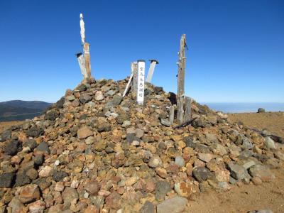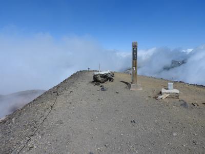 9月第2週の登山でしたが,頂上は既に氷点下に達しており,標識には氷が張っていました.頂上まではかなりの強風で,登頂直後は全く何も見えませんでしたが,暫くして開けた展望は素晴らしいものがあり,北海道の雄大さを改めて知らされた感じでした.