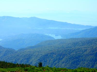 頂上直下から森林限界を超え,頂上に樹木はありませんので,景色は非常に素晴らしく,檜原湖や磐梯山を望むことが出来ました.
