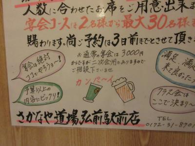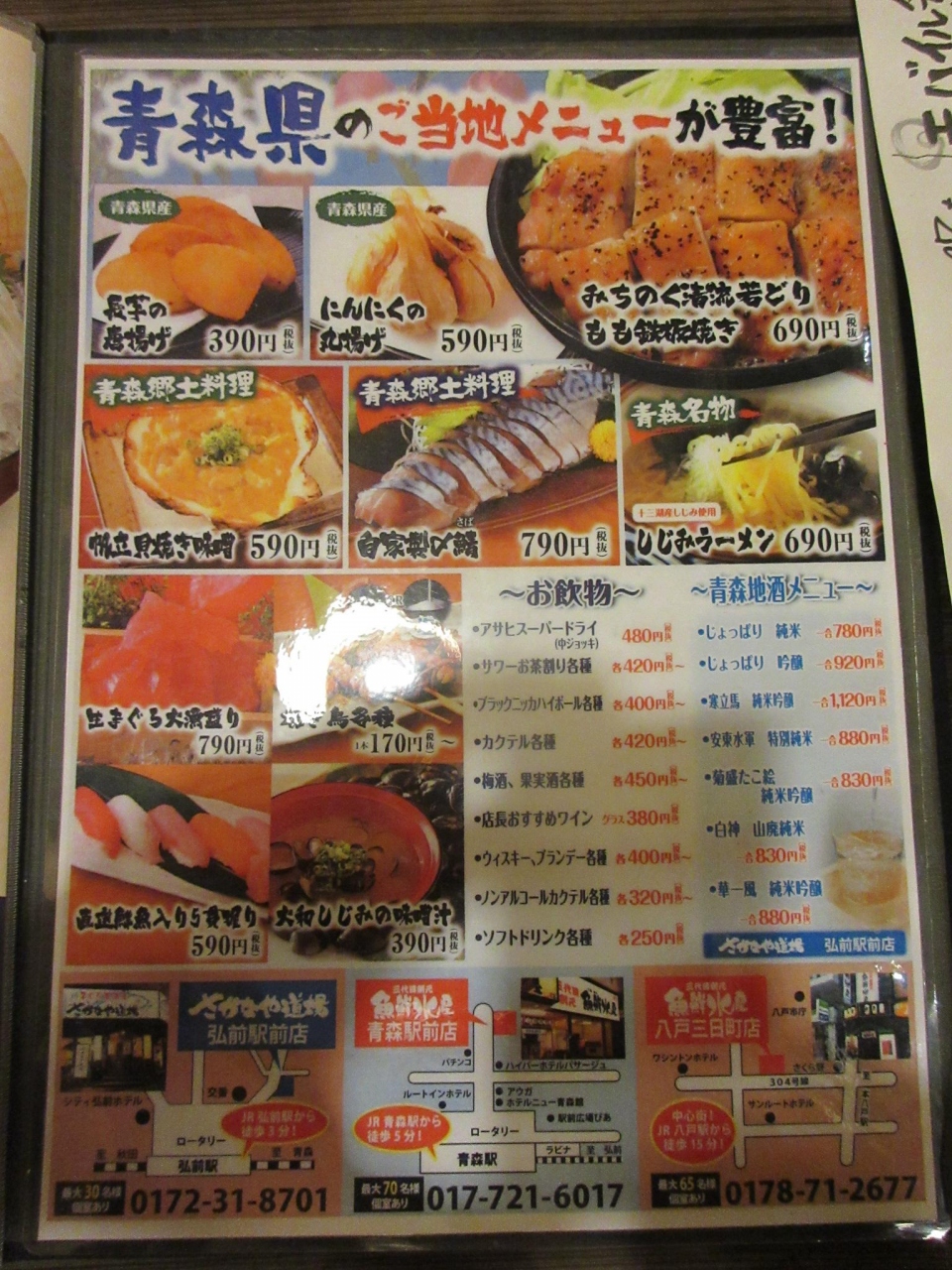 弘前駅前にあります.チェーン店のようで,同じ名前の店が他にもあります.立地条件が良いせいか,結構混雑していました.北海道や青森産の新鮮な魚介類を食べることが出来ます.また,青森の地酒も楽しむことが出来ます.