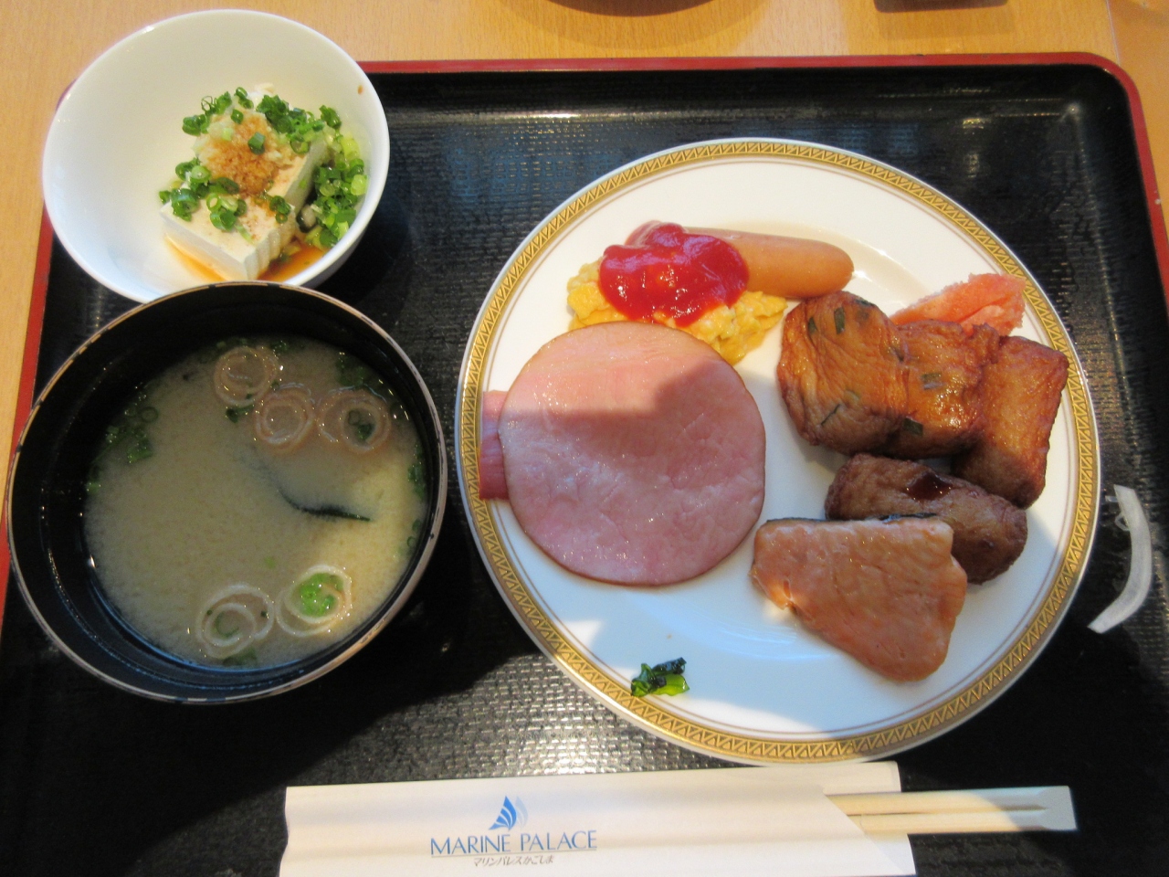 ・朝食:2Fのレストランでビュッフェ方式.品数は大したことはありませんが,薩摩揚げ等の鹿児島郷土料理が味わえる他,普通のビジネスホテルに比べると,フルーツが充実していました.