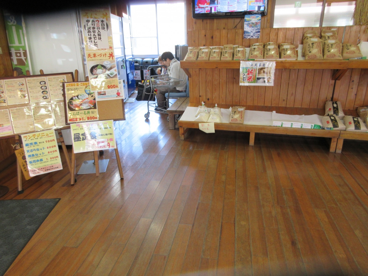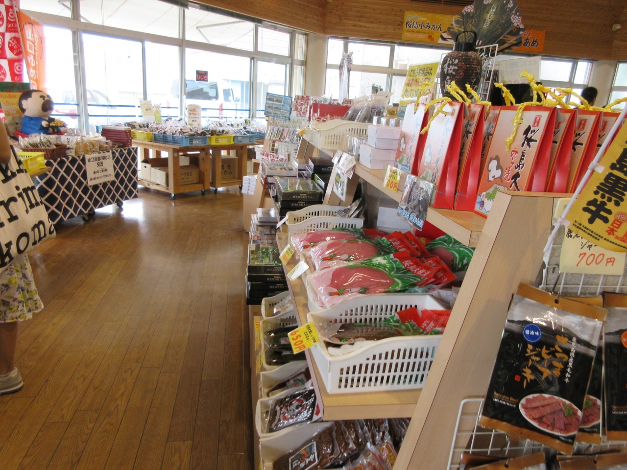 国道266号線(天草パールライン)沿いにあります.売店は野菜・果樹コーナー,海産物コーナー,生け花コーナー,お土産コーナー,レストランに分かれており,全部合わせると,かなり広い売り場面積になると思いました.海産物はタコを丸ごと甘辛く煮たものや,開いた魚を丸ごと使って押し寿司にしたものなど,余り他では見かけない?食べ物を売っていました.