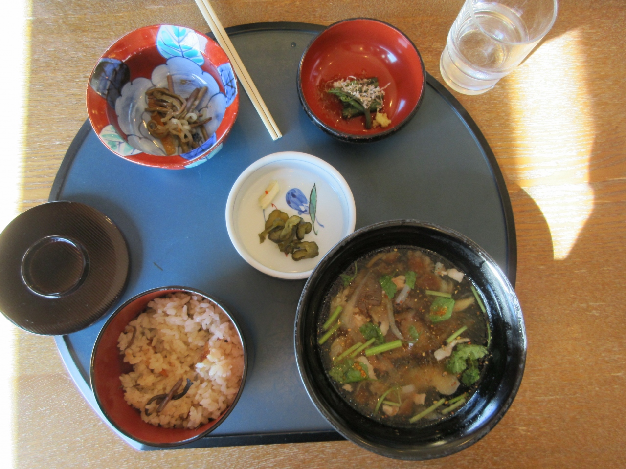 ・須川温泉は車でも手軽に行け,栗駒山の登山口にもなっているので,休日は駐車場も満杯になるほどの人気です.深山きのこ汁膳は,きのこご飯,きのこ汁,小鉢3個た付いて1,100円.小鉢に盛られているのは山菜と漬物ですが,どれも量がかなり少なく,チョット見劣りがしました.レストランからの展望は良く,景色を堪能することができました.「場所代」として考えれば,ある程度納得できます.- 旅行時期