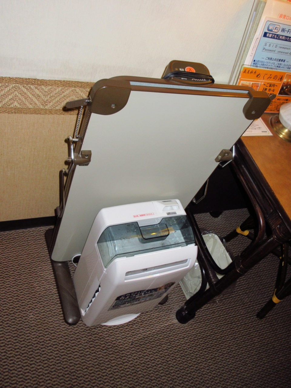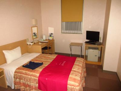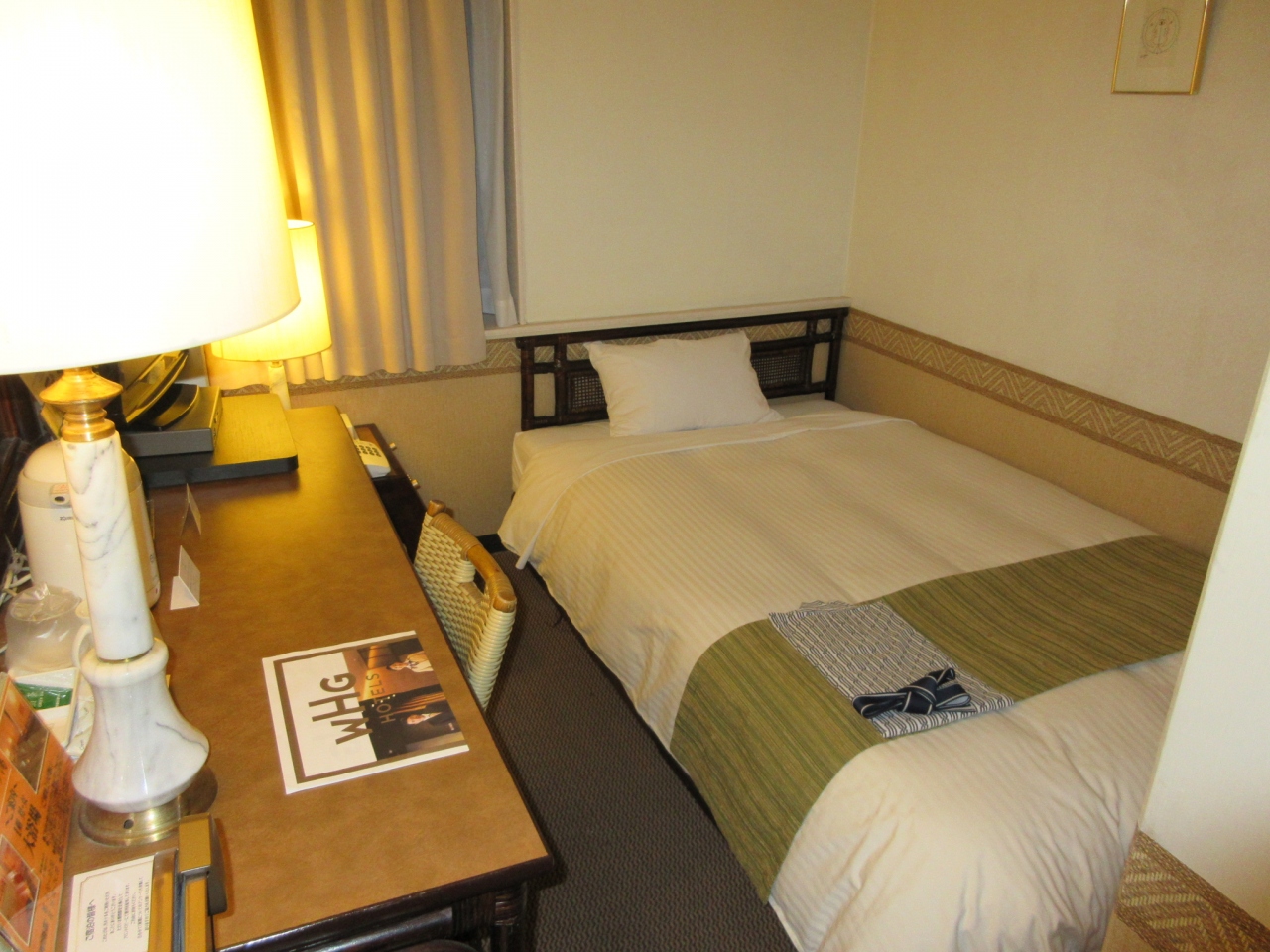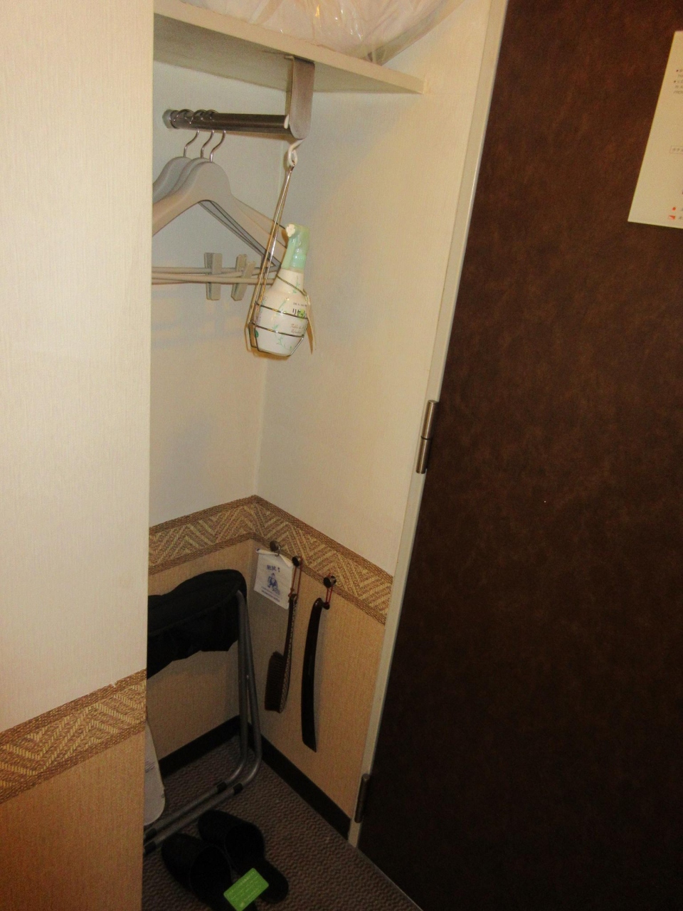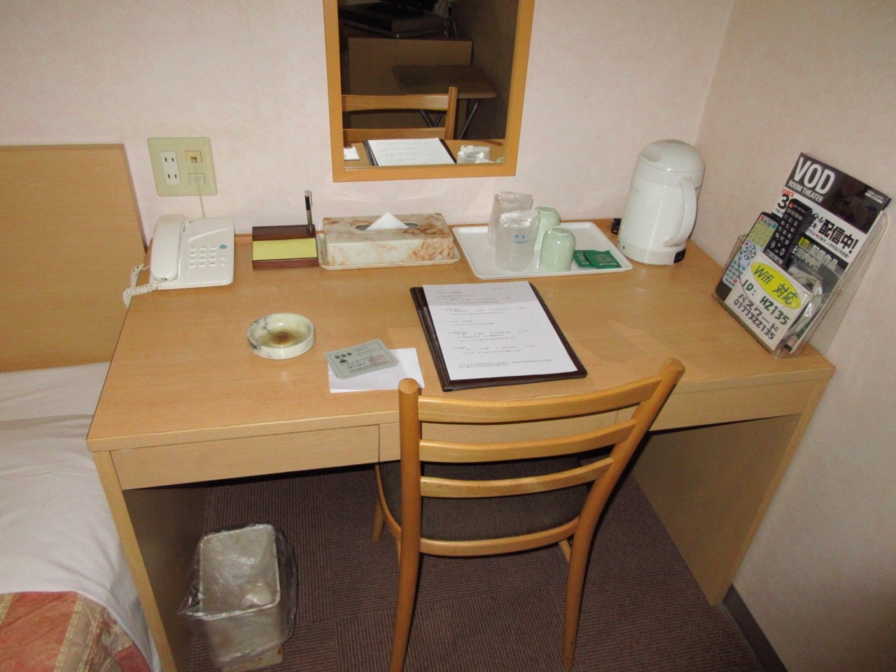 ・部 屋:シングル禁煙で12m2.室内は狭いですが,加湿器とズボンプレッサーが置いてあります.エアコンは3段階調節で,自由な設定はできません.
