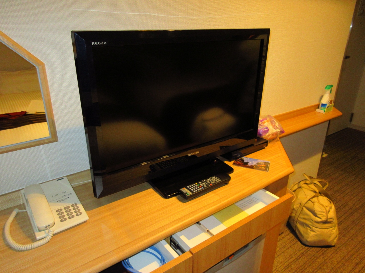 ・TV:HITACHI WOOの21インチくらい.最近のビジネスホテルにしては少し小さいです.