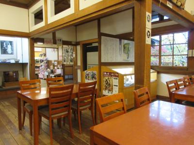 鮎茶屋らしく鮎の塩焼きを500円で売っていました.結構美味しかったです.お店の2Fに展示スペースがあり,近くで発掘されたと思われる縄文土器(レプリカ)や小国側で鮎を捕まえるときの網などが展示されていました.なお,水槽もありましたが,何故か,泳いでいるのは金魚でした(笑).