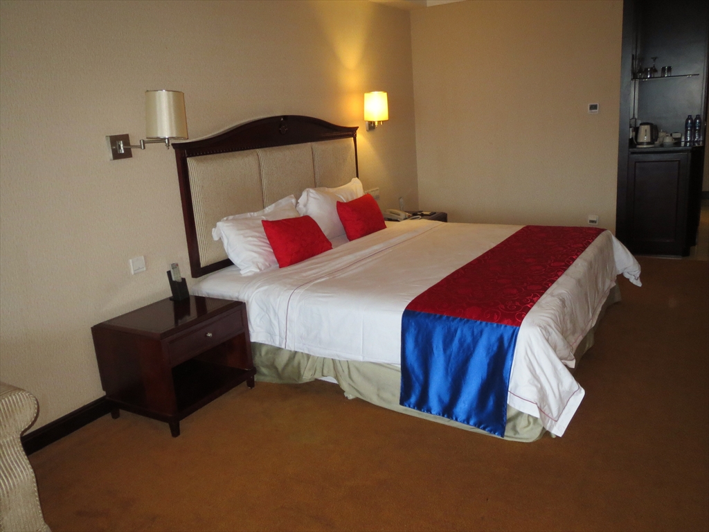 湖の畔に建っていて,外観はお城のような感じです.市内から少し離れているせいか,このクラスのホテルにしてはやや安めです.室内は広くバスタブも付いており,十分満足の行くホテルでした.ただ,Visaなどのクレジットカードは使えず,宿泊料金は現金払いとなりました.
