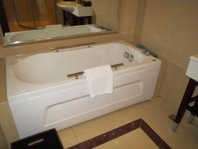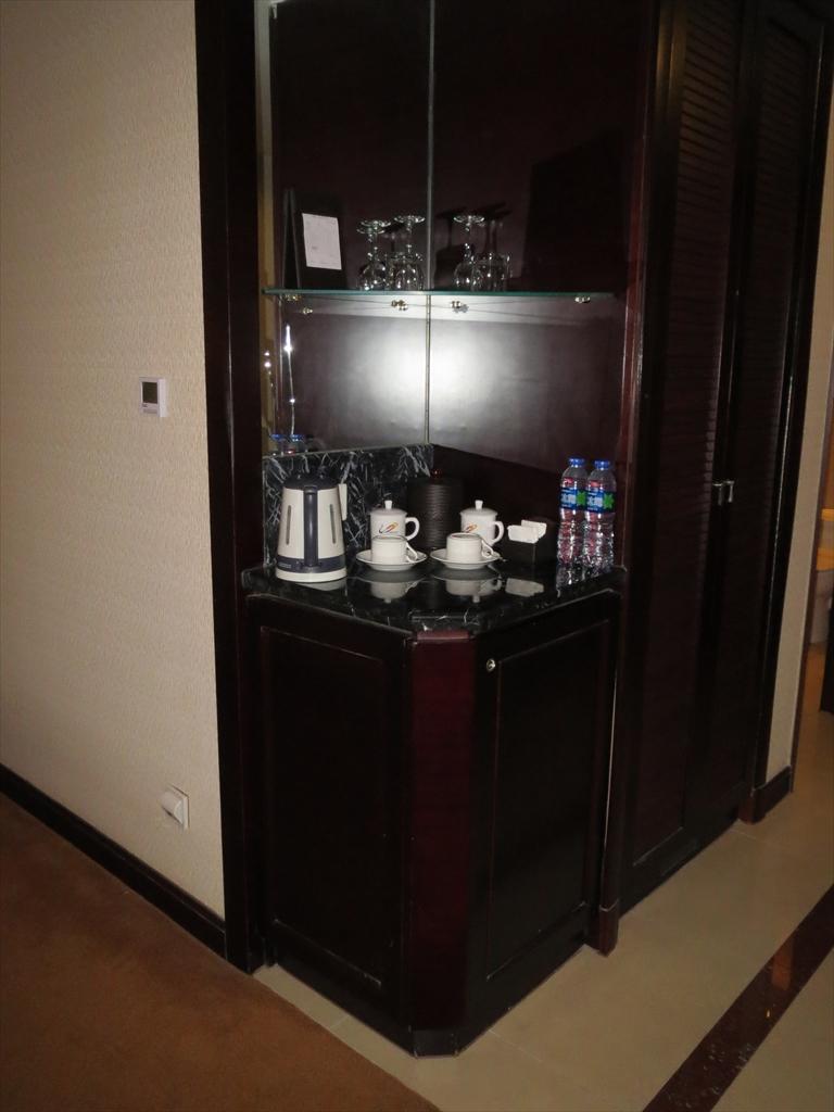 朝食付き9300円.高層ホテルですが,入り口は結構小さいです.屋上にあるレストランはゆっくりと回転します.Wi-Fiは使えますが,中国なので自由に見られません.お風呂が透明なガラス張りだったのがチョットビックリでした.