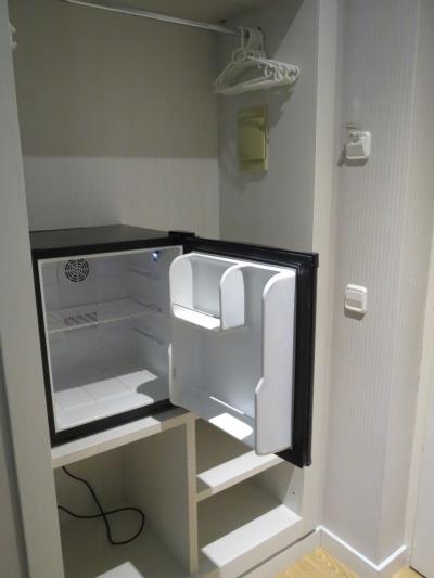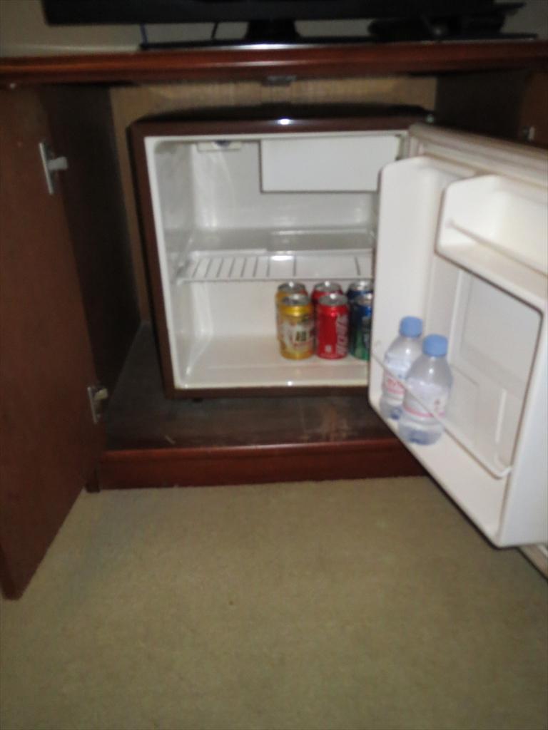 部屋には冷蔵庫(空)が付いていますので,ビールやワインを冷やしておくことが出来,長期滞在にも便利です.
